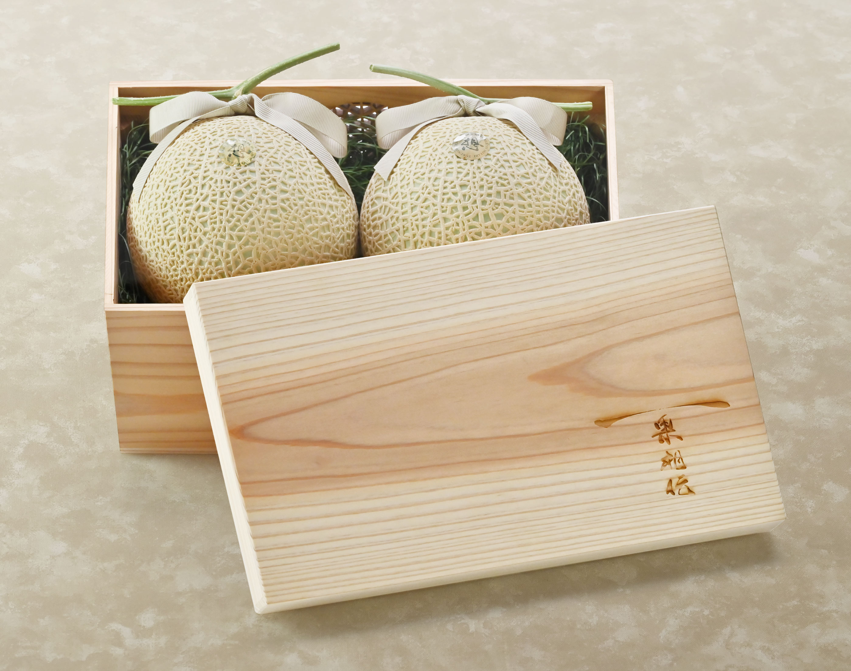 | 注意事項 | ・一箱につき一本オリジナルメロンスプーンが付いています。 ・手提げ袋(+0円)ご入用の場合は、ご注文時連絡事項にご記入くださいませ。 記入例【手提げ袋:要】 ※2玉箱用は[舟]柄のみとなります。袋は下記に画像を添付しています。 ※一箱につき一袋です。 ※ご希望の記入がない場合はお付けしておりません。 |