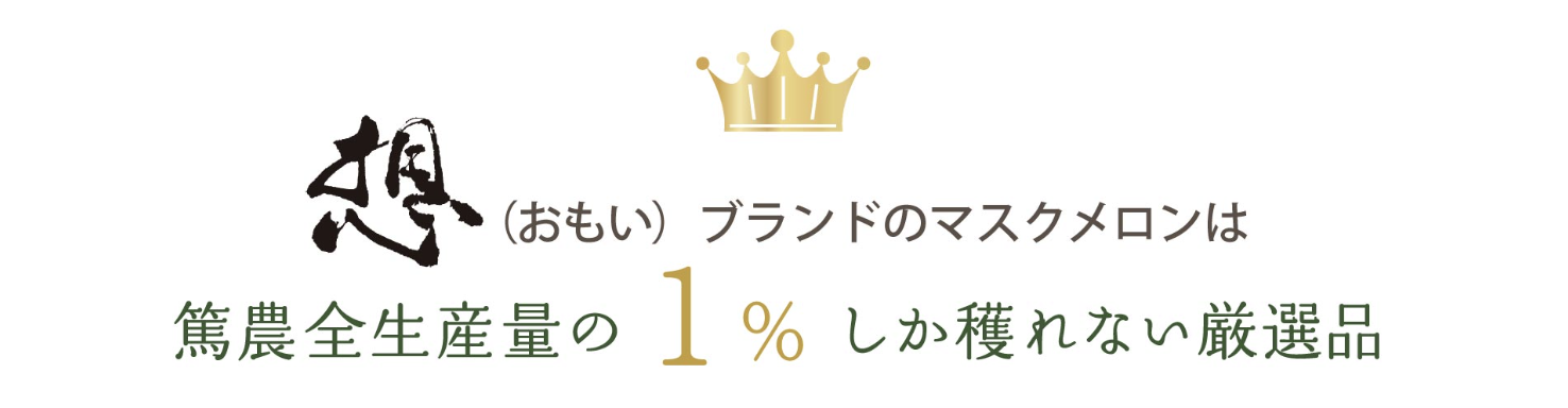 【想】(おもい)は、篤農全生産量の1%しか獲れない厳選品です。とても希少なメロンとなり、発送目安はご注文から《約3週間》となります。ご希望の日にメロンをお届け出来ない場合はこちらから連絡を差し上げます。